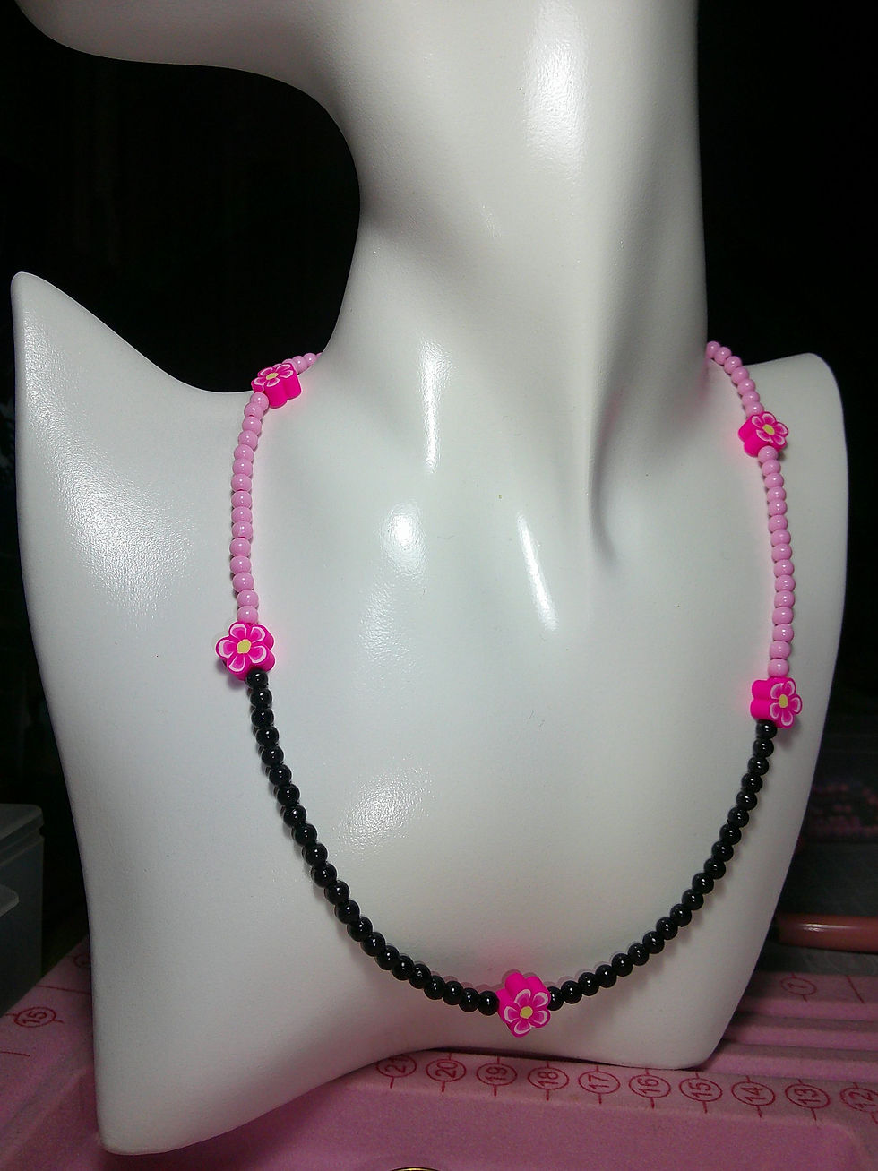 PINK BLACK FLOWERS NECKLACE